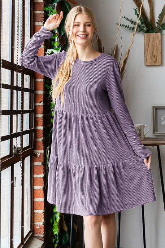 Long Sleeve Solid Urban Ribbed Tier Dress